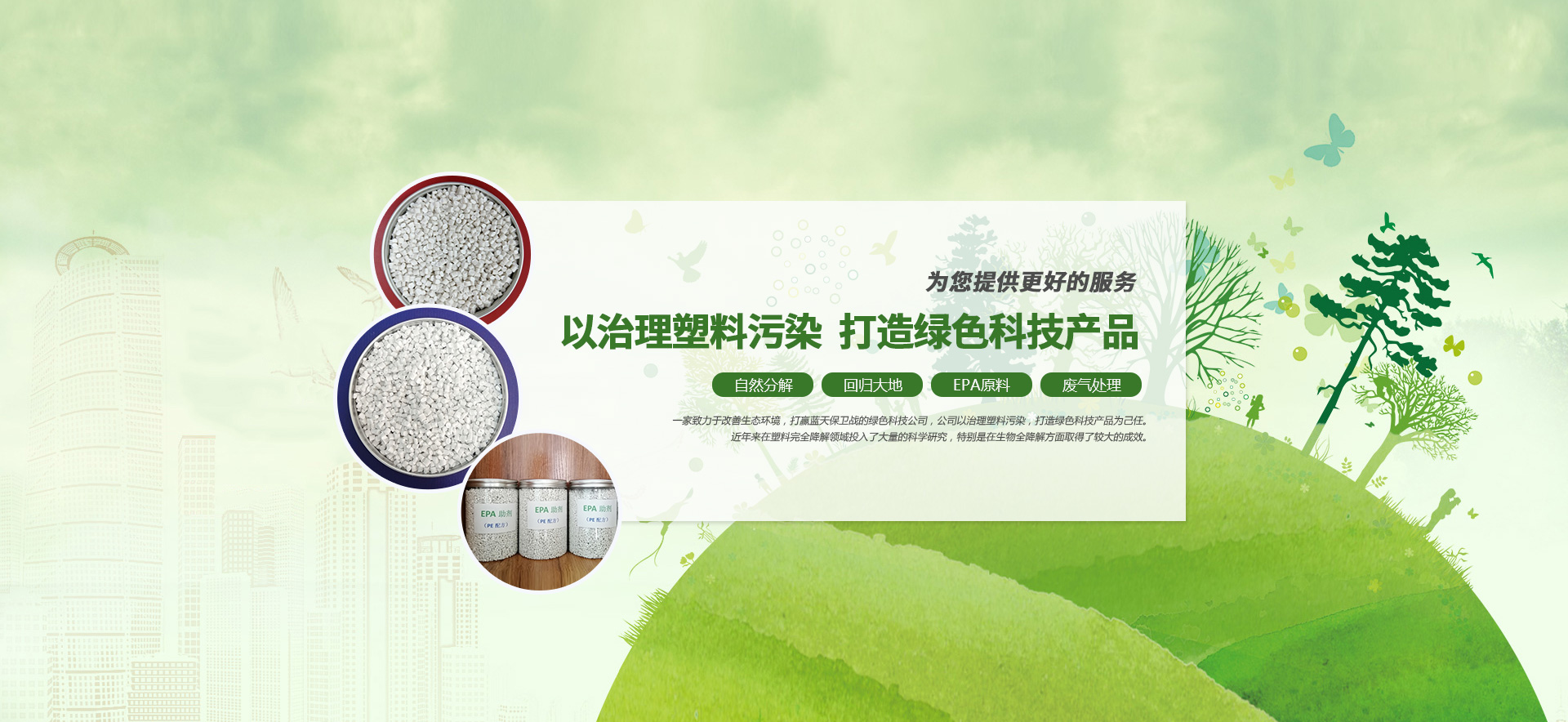 公司利用所擁有的專利技術,結合先進的納米技術專業生產“塑料生物降解劑(功能性母料)”、